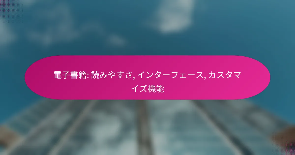 電子書籍は、読みやすさやインターフェースの設計が重要な要素となっています。フォントや背景色のカスタマイズ機能により、読者は自分の好みに合わせた快適な読書体験を楽しむことができます。直感的なナビゲーションやインタラクティブな要素も、全体のユーザーエクスペリエンスを向上させる役割を果たしています。 電子書籍の読みやすさとは何か? 電子書籍の読みやすさは、読者が快適に内容を理解できるかどうかに関わる重要な要素です。フォント、背景色、行間などの設定が、全体の読書体験に大きな影響を与えます。 フォントサイズとスタイルの影響 フォントサイズとスタイルは、電子書籍の読みやすさに直接的な影響を及ぼします。一般的に、12ポイントから14ポイントのフォントサイズが多くの読者にとって快適です。特に、セリフ体とサンセリフ体の選択は、視認性や印象に違いをもたらします。 読者の年齢や視力に応じて、フォントのスタイルを変更することも考慮すべきです。特に高齢者や視力に問題がある人には、太字や明瞭なサンセリフ体が推奨されます。 背景色とコントラストの重要性 背景色と文字のコントラストは、視認性に大きな影響を与えます。一般的には、白い背景に黒い文字が最も読みやすいとされていますが、ダークモードを好む読者も増えています。 背景色を選ぶ際には、目の疲れを軽減するために、柔らかい色合いを選ぶことが重要です。特に長時間の読書を行う場合、薄いグレーやクリーム色の背景が好まれることがあります。 行間と段落の配置の役割 行間と段落の配置は、テキストの流れをスムーズにし、読みやすさを向上させます。行間は1.5倍から2倍のスペースが理想的とされ、これにより文字が詰まりすぎず、視線の移動が楽になります。 段落の配置も重要で、適切な間隔を設けることで、読者が内容を把握しやすくなります。特に、重要なポイントや新しいアイデアの開始時には、段落を分けることが効果的です。 ユーザーの視覚的快適さのための設定 ユーザーの視覚的快適さを考慮した設定は、電子書籍の魅力を高めます。多くの電子書籍リーダーでは、フォントサイズ、背景色、行間をカスタマイズできる機能があります。 これらの機能を活用することで、各読者が自分に最適な設定を見つけやすくなります。特に、視力に不安がある場合は、これらの設定を調整することが重要です。 読みやすさの評価基準 電子書籍の読みやすさを評価する基準には、フォントの可読性、コントラスト、行間、段落の配置が含まれます。これらの要素を総合的に考慮することで、読者の快適さを測ることができます。 また、ユーザーからのフィードバックを基に、これらの基準を改善することが重要です。定期的な評価を行い、読者のニーズに応じた調整を行うことで、より良い読書体験を提供できます。 電子書籍のインターフェースはどのように設計されているか? 電子書籍のインターフェースは、ユーザーが快適に読書を楽しめるように設計されています。直感的なナビゲーション、インタラクティブな要素、カスタマイズ機能が組み合わさり、全体的なユーザーエクスペリエンスを向上させます。 ナビゲーションの簡便さ 電子書籍のナビゲーションは、ユーザーが簡単に目的のページや章にアクセスできるように設計されています。目次やブックマーク機能を活用することで、読者はスムーズに移動できます。 さらに、スワイプやタップなどのジェスチャー操作が可能なインターフェースは、特にタブレットやスマートフォンでの利用時に便利です。 インタラクティブ要素の活用 インタラクティブ要素は、読書体験をより魅力的にします。例えば、動画や音声、クイズなどが組み込まれた電子書籍は、情報を視覚的かつ聴覚的に伝えることができます。