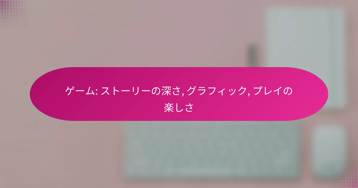 ゲームの魅力は、ストーリーの深さ、グラフィック、そしてプレイの楽しさにあります。深いストーリーはプレイヤーに感情的な影響を与え、キャラクターの成長を通じて没入感を高めます。また、視覚的な要素は体験を豊かにし、ゲームプレイの楽しさは多様なメカニクスやリプレイ価値によって測られます。 ゲームのストーリーの深さとは何か? ゲームのストーリーの深さは、プレイヤーが体験する物語の複雑さや感情的な影響を指します。深いストーリーは、キャラクターの成長や選択の重要性を通じて、プレイヤーに強い没入感を提供します。 ストーリーの構造と要素 ストーリーの構造は、導入、展開、クライマックス、結末の4つの主要な要素から成り立っています。これらの要素が効果的に組み合わさることで、物語に緊張感や期待感を生み出します。 例えば、プレイヤーが直面する課題や敵との対決が、物語の進行において重要な役割を果たします。これにより、ストーリーが単なる背景ではなく、プレイヤーの行動に影響を与える要素となります。 キャラクターの発展と背景 キャラクターの発展は、ストーリーの深さを決定づける重要な要素です。プレイヤーが感情移入できるキャラクターは、物語の魅力を高めます。 キャラクターの背景や動機が明確であることは、プレイヤーがそのキャラクターの選択を理解しやすくし、物語に対する興味を持続させます。たとえば、過去のトラウマや目標がキャラクターの行動に影響を与えることで、よりリアルな体験が生まれます。 プレイヤーの選択と影響 プレイヤーの選択は、ストーリーの進行や結末に直接的な影響を与えます。選択肢が多いゲームでは、プレイヤーが自分の選択を通じて物語を形作る感覚を得られます。 例えば、特定のキャラクターを助けるか見捨てるかの選択が、後の展開に大きな変化をもたらすことがあります。このような選択は、プレイヤーに責任感を与え、物語への没入感をさらに深めます。 感情的な引き込みと没入感 感情的な引き込みは、プレイヤーがストーリーに没入するための鍵です。感情的な瞬間やキャラクターの苦悩は、プレイヤーの共感を呼び起こします。 例えば、キャラクターが大切な人を失うシーンは、プレイヤーに強い感情的な反応を引き起こします。このような体験が、ゲームのストーリーをより深く、記憶に残るものにします。 ストーリーテリングの技法 ストーリーテリングの技法には、フラッシュバックや視点の切り替えなどがあります。これらの技法を使うことで、物語に深みや複雑さを加えることができます。 例えば、フラッシュバックを利用してキャラクターの過去を明かすことで、プレイヤーはそのキャラクターの行動や選択をより理解しやすくなります。これにより、ストーリー全体の一貫性が保たれ、プレイヤーの興味を引き続き引きつけることができます。 ゲームのグラフィックの重要性は何か? ゲームのグラフィックは、プレイヤーの没入感や体験を大きく左右します。視覚的な要素は、ストーリーの伝達やゲームプレイの楽しさに直結しているため、重要な役割を果たしています。 グラフィックスタイルの種類 ゲームには多様なグラフィックスタイルが存在します。リアルな3Dグラフィックから、手描き風の2Dアート、さらにはピクセルアートまで、スタイルによってゲームの雰囲気やテーマが大きく変わります。 例えば、ファンタジーゲームではカラフルで幻想的なアートスタイルが好まれることが多く、ホラーゲームでは暗い色調や不気味なデザインが用いられます。 リアリズムとアートスタイルの比較 リアリズムは、現実世界に近い視覚表現を目指すスタイルです。これに対し、アートスタイルは独自の美的感覚を重視し、現実を超えた表現を可能にします。