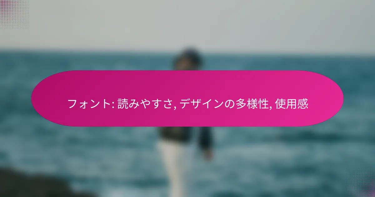 フォントは、読みやすさやデザインの多様性において重要な役割を果たします。適切なフォントを選ぶことで、情報の伝達がスムーズになり、読者の理解を深めることができます。また、フォントのスタイルはブランドの印象や感情の喚起にも影響を与え、使用感を向上させる要素となります。 フォントの読みやすさとは何か? フォントの読みやすさは、文字の形状や配置が視覚的にどれだけ容易に認識できるかを指します。適切なフォント選びは、情報の伝達をスムーズにし、読者の理解を助けます。 フォントのサイズとその影響 フォントのサイズは、読みやすさに直接的な影響を与えます。一般的に、印刷物では10ptから12pt、ウェブでは16px以上が推奨されます。小さすぎるフォントは視認性を低下させ、逆に大きすぎるフォントはページのバランスを崩す可能性があります。 行間と文字間の重要性 行間(ラインスペーシング)と文字間(カーニング)は、テキストの可読性を向上させる重要な要素です。行間は通常、フォントサイズの1.5倍から2倍が理想とされ、文字間は適度に設定することで文字の認識が容易になります。 色彩とコントラストの役割 色彩とコントラストは、フォントの読みやすさに大きな影響を与えます。背景色と文字色のコントラストが高いほど、視認性が向上します。例えば、黒い文字に白い背景は非常に読みやすい組み合わせです。 フォントスタイルの選択基準 フォントスタイルの選択は、目的や対象読者に応じて異なります。ビジネス文書にはセリフ体やサンセリフ体が好まれ、カジュアルなコンテンツには手書き風フォントが適しています。選択時は、フォントの雰囲気や用途を考慮することが重要です。 視覚的な疲労を軽減する方法 視覚的な疲労を軽減するためには、適切なフォントサイズ、行間、コントラストを設定することが基本です。また、長時間の読書を避けるために、定期的に休憩を取ることも効果的です。目の疲れを感じたら、画面から目を離し、遠くを見ることをお勧めします。 フォントデザインの多様性はなぜ重要か? フォントデザインの多様性は、視認性やブランドの印象を大きく左右します。異なるフォントスタイルは、情報の伝達や感情の喚起において重要な役割を果たします。 異なるフォントスタイルの特徴 フォントスタイルには、セリフ、サンセリフ、スクリプト、ディスプレイなどがあり、それぞれ異なる特徴を持っています。セリフフォントは伝統的で堅実な印象を与え、サンセリフフォントはモダンでクリーンな印象を与えます。 スクリプトフォントは手書きのような流れるデザインが特徴で、感情的な表現に適しています。ディスプレイフォントは目を引くデザインで、特別な用途に使われることが多いです。 ブランドアイデンティティとの関連性 フォントはブランドアイデンティティを形成する重要な要素です。適切なフォント選びは、ブランドのメッセージや価値観を視覚的に表現します。 例えば、高級ブランドはエレガントなセリフフォントを使用することが多く、カジュアルなブランドは親しみやすいサンセリフフォントを選ぶ傾向があります。 文化的背景がデザインに与える影響 フォントデザインは文化的背景に大きく影響されます。特定の地域や文化に根ざしたデザインは、視覚的な意味合いを持ち、受け手に特有の感情を喚起します。 例えば、日本の書道にインスパイアされたフォントは、伝統的な美しさを表現し、欧米のフォントとは異なる印象を与えます。 デジタルメディアにおけるフォントの役割