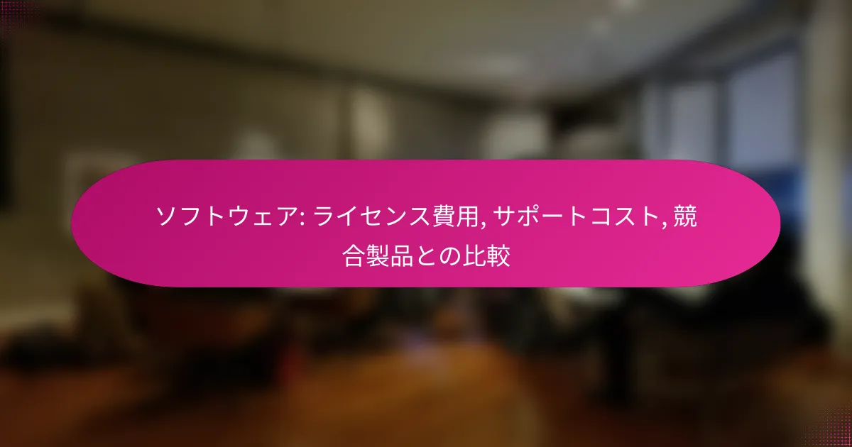 ソフトウェアのライセンス費用は、使用するために必要な料金であり、ライセンスモデルやサポート内容によって異なります。また、サポートコストには技術サポートやアップデートなどが含まれ、企業の予算に影響を与える要因となります。競合製品との比較を行うことで、価格や機能、ユーザー評価を考慮し、最適なソフトウェアを選ぶことが可能です。 ソフトウェアライセンス費用とは何か? ソフトウェアライセンス費用は、特定のソフトウェアを使用するために支払う料金を指します。この費用は、ライセンスモデルやサポートの内容によって異なります。 ライセンスモデルの種類と特徴 ソフトウェアのライセンスモデルには、主にパーペチュアルライセンスとサブスクリプションライセンスがあります。パーペチュアルライセンスは、一度の支払いで永続的に使用できるのに対し、サブスクリプションライセンスは定期的な支払いが必要です。 さらに、フリーウェアやオープンソースソフトウェアも存在し、これらは無料で使用できる場合がありますが、サポートや機能に制限があることが一般的です。 ライセンス費用の計算方法 ライセンス費用は、ソフトウェアの種類、使用するユーザー数、必要な機能によって異なります。例えば、企業向けのソフトウェアは、ユーザー数に応じてスケールする料金体系を持つことが多いです。 一般的には、初期費用に加え、年間のサポート費用や更新費用が発生することがあります。これらを合算して総コストを算出します。 一般的なライセンス費用の範囲 ソフトウェアのライセンス費用は、数百ドルから数千ドルまで幅広く設定されています。小規模なビジネス向けのソフトウェアは、数百ドルで購入できることが多いですが、大企業向けのソリューションは数千ドル以上になることがあります。 サブスクリプションモデルの場合、月額料金は数十ドルから数百ドルの範囲で設定されることが一般的です。 ライセンス費用に影響を与える要因 ライセンス費用は、ソフトウェアの機能、サポートのレベル、導入するユーザー数によって影響を受けます。特に、エンタープライズ向けの機能やカスタマイズが必要な場合、費用が高くなる傾向があります。 また、地域によっても価格が異なることがあり、特に国際的な企業は為替レートや地域の市場状況を考慮する必要があります。 ライセンス更新のコスト ライセンスの更新には、通常、年間のサポート費用や新機能の追加に伴う費用が含まれます。更新費用は、初期ライセンス費用の一定割合で設定されることが多いです。 更新を怠ると、ソフトウェアの使用が制限されたり、セキュリティリスクが高まる可能性があるため、定期的な確認と計画が重要です。 ソフトウェアサポートコストの内訳は? ソフトウェアサポートコストは、ソフトウェアの使用を維持するために必要な費用の詳細を示します。これには、技術サポート、アップデート、トレーニングなどが含まれ、企業の予算に大きな影響を与えることがあります。 サポートの種類とその費用 ソフトウェアサポートには、主に電話サポート、メールサポート、オンサイトサポートの3種類があります。電話サポートは通常、月額数千円から始まり、メールサポートは比較的安価で、数百円から提供されることが一般的です。 オンサイトサポートは、技術者が直接訪問するため、費用が高くなる傾向があります。これにより、数万円から数十万円のコストがかかることがあります。 サポート契約の選び方 サポート契約を選ぶ際は、企業のニーズに合ったサービスレベルを考慮することが重要です。例えば、24時間対応が必要な場合は、プレミアムプランを選ぶべきですが、通常の業務時間内で十分な場合は、基本プランでコストを抑えられます。